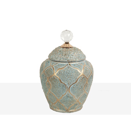 Vista rápida BOTE CERAMICA VERDE AGUA Y DORADO CON TAPADERA... 23,85 € Añadir al carrito Availability: 5 In Stock