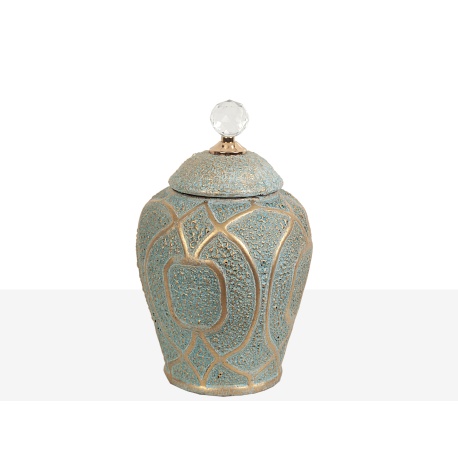 Vista rápida BOTE CERAMICA VERDE AGUA Y DORADO CON TAPADERA... 23,85 € Añadir al carrito Availability: 5 In Stock