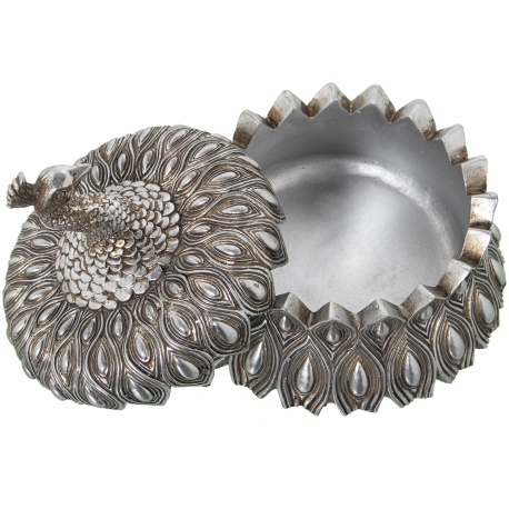 CAJA JOYERO RESINA PLATEADA PAVO REAL
