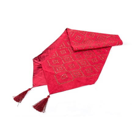 CAMINO DE MESA ROJO CON TACHUELAS DORADAS