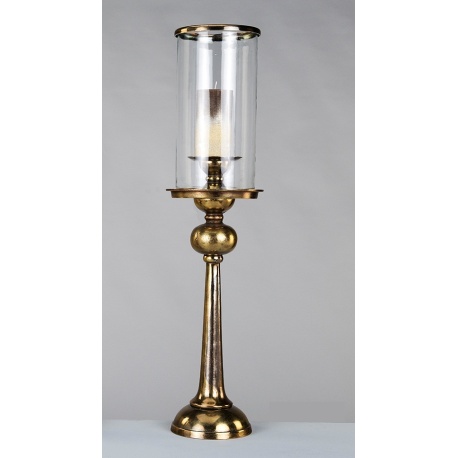 PORTAVELAS METAL ORO ENVEJECIDO CON CRISTAL