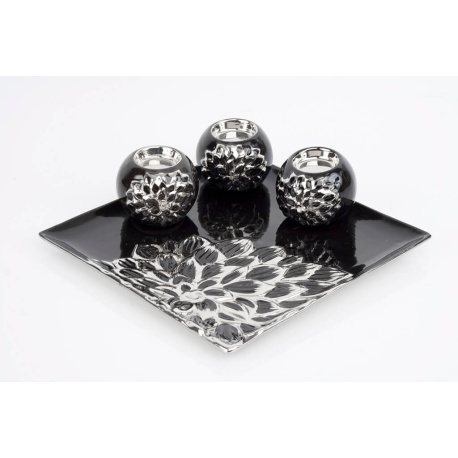 CENTRO + PORTAVELAS NEGRO Y PLATA