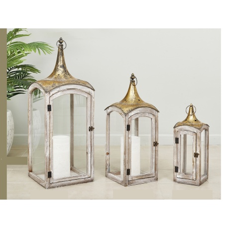 FAROL BLANCO ANTIQUE PATINADO EN ORO