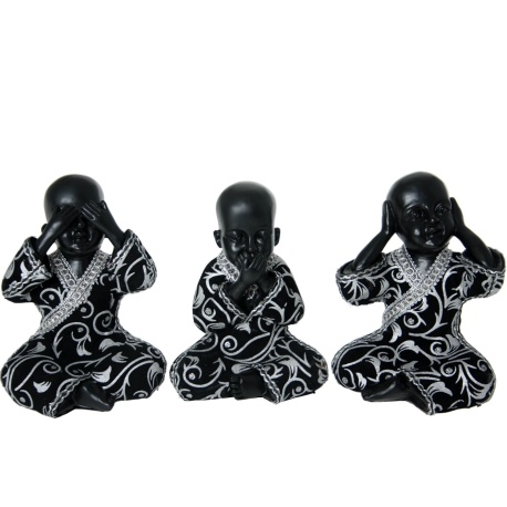 FIGURA BUDA RESINA PLATA Y NEGRO
