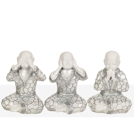 MONJES SENTIDOS CERAMICA PLATEADOS Y BLANCOS