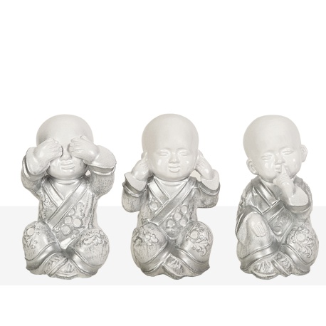 MONJES SENTIDOS CERAMICA PLATEADOS Y BLANCOS