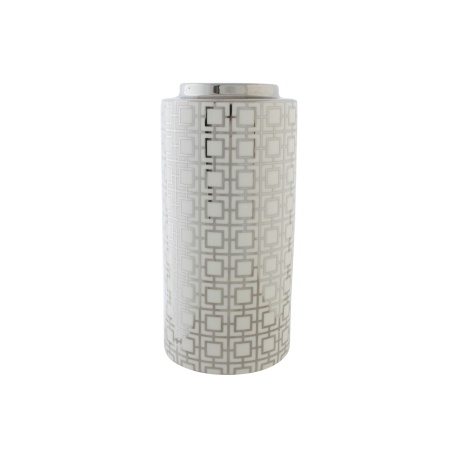 JARRON PORCELANA BLANCO Y PLATA