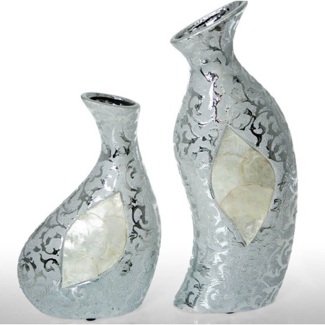 JUEGO DOS JARRONES PLATA Y NACAR