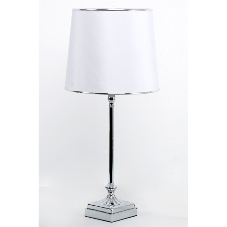 LAMPARA PIE CROMO Y PANTALLA BLANCA
