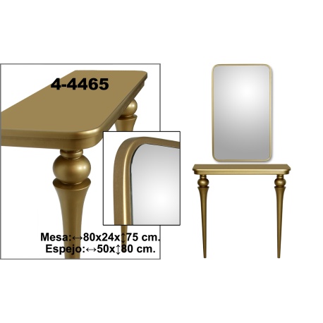 MESA ENTRADA Y ESPEJO MADERA DORADA