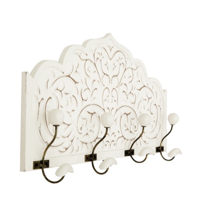 PERCHA 4 POMOS MADERA TALLADA