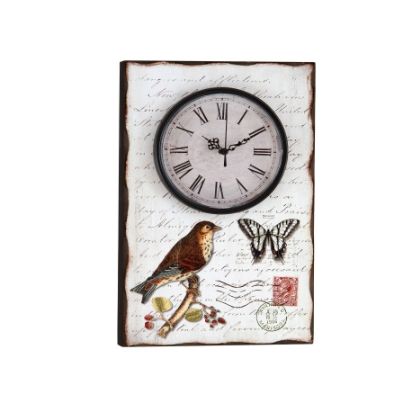 RELOJ PARED RECTANGULAR BLANCO DIBUJO PÁJARO